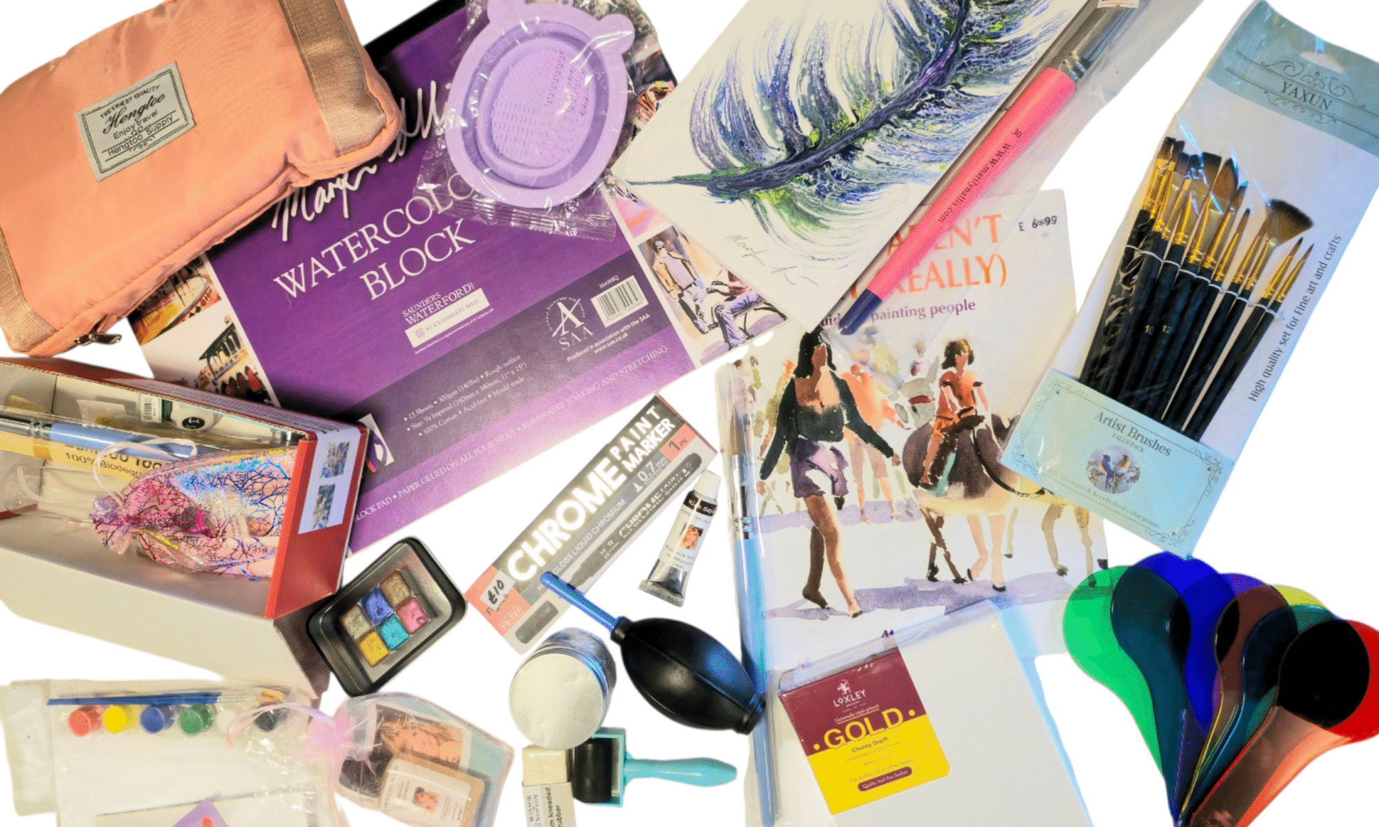 . Surplus & end of line art materials, which might include canvas, paper, brushes, paints
